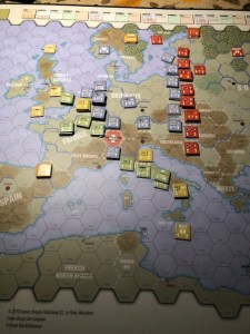So my short play did have the feel of an old Avalon Hill game, but the number of moving parts was significantly reduced. Moving a single unit, now an army, felt like an important decision. In the other games that handle WW2 Europe, you would need to move three or four or ten or twenty units for the same change. Dice rolling and detailed moves would take an hour or more. Jon Compton’s moving to the army level has you make the same decision without the insane level of moving paper items and spending an hour trying to execute the same effect.