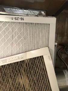 With the rain coming, it was time to replace the air filter in the furnace/AC–I want clean, nice air again. I was out of filters at the house. I saw that I could buy one for $35 online or buy one for half that at my local hardware. So in my mask, I went to True Value and picked up two filters. I then installed it and was shocked by what the two months of bad air had done to my filter. It was warped and almost black. The filters are usually gray when it is time to replace them.