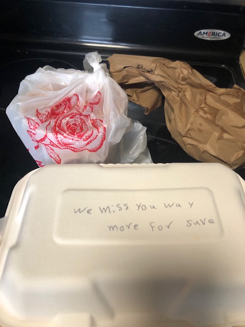 I always put a note on my order to Gyro House that I miss them. Today they wrote back.