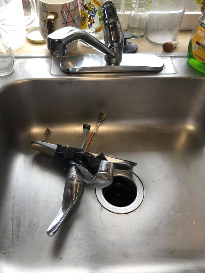 I also replaced the faucet in the kitchen. Corwin and I discussed it, and we were concerned that the tape job on the old one would not be enough. I went to Ace Hardware and bought the same faucet I installed with dad on September 20, 2010 (I found the photo). It took an hour. The old one came out easy, but the new one was harder to install, and I had to get two wrenches to attach a hose. It was easy after that, but a lot of muscles are saying, “what was that?” now.