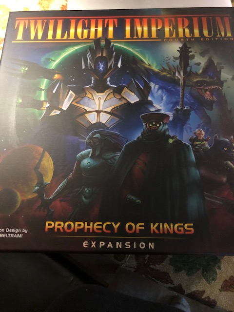 I did receive one of my board game orders today, Twilight Imperium 4 Extension: Prophecy of Kings. This is the long-awaited addition (and some corrections) to the #1 4X-styled board game (4X: eXplore, eXpand, eXploit, & eXterminate) from Minnesota’s Fantasy Flight Game. One imagines you must live where it is freezing to design a space empire game! Few games make it to version 4 and then add on an extension, but Twilight Imperium is one that we expect, as they said in Harry Potter, great things–terrible great things.