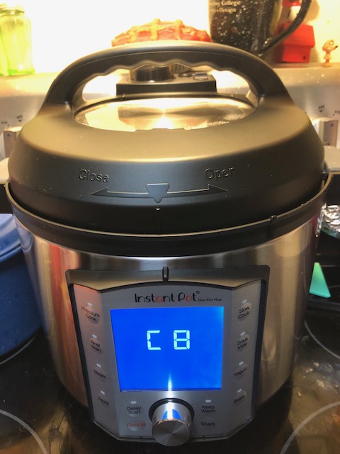 I do manage to not break it or to burn myself with the C8 on the Instant Pot. I unplug it after I get it open from the first run and do the test rerun. Perfect. But, because I could not cook dinner while this was in the way, I ordered pizza (see above for how that went).