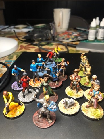 The fantasy figures in the middle use the black primer and light white over the black. The paints are then diluted. For these, I used special inks that were used to bring out the highlights. The paint on these middle figures is a bit dark for me, but they are better than game board quality. These fantasy figures are from Estonia.