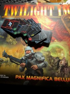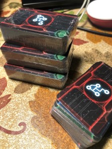 I also received the printed cards I made for the massive game Twilight Imperium 4. The new cards were presented in new rules but not supplied in any add-on. I learned how to make cards from instructions online using the MPC, Make Playing Cards, website. I made four copies, one for me and a local gamer and two to give to others who need to update their copy of TW4. The new cards replace some existing cards in the game, rule changes and content updates, and are new cards for new content and some special scenarios. It is exciting to learn how to make replacement gaming cards.