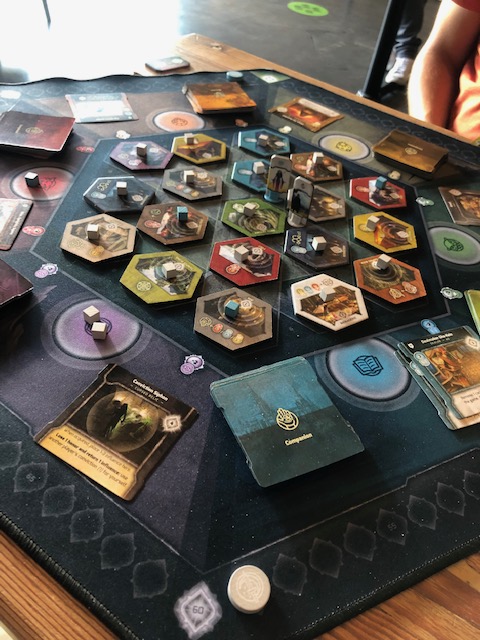 We then headed to Wildwood Taphouse to play games; we knew they were open. As usual, I opened a tab and asked permission to play a board game. They were not very busy; the newish bartender was interested in Vindication. We explain some of the game’s features to her.