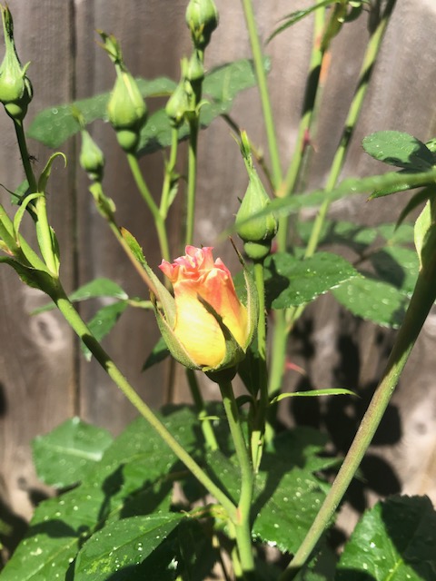I finally get to shower and dress at 10ish. The meetings finally break, but the email and Slack text are ongoing. I did walk out and look at the roses. We have a few more blooms to share.
