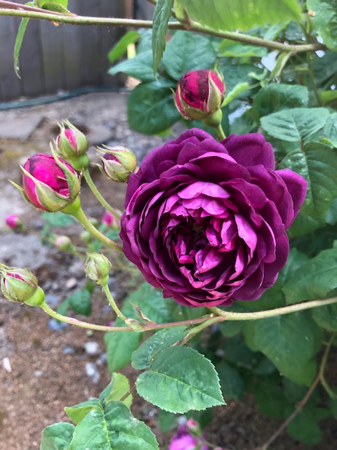 I stepped out to get Susie and my lunch from Aloha Teriyaki. A bento box for me and a chicken bowl for Susie. I also took a photo of the Cardinal Richelieu rose. This is an old rose and blooms only once. It is not a good cut flower as it loses its pedals too fast. I still love to see it flower every year.