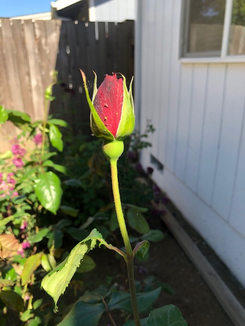 My red tea roses, with lots of aphids, are almost ready to bloom.