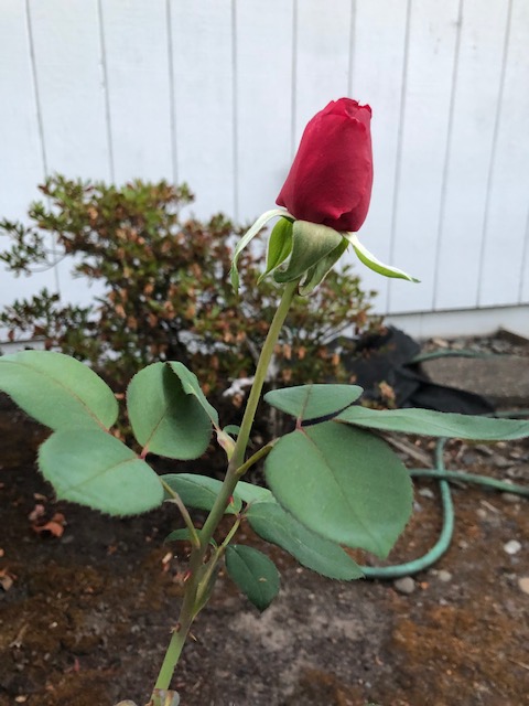 While all this was going on, Mister Lincoln, my newest roses, has started to bloom. The plant has two blooms starting. They are smaller as it is mid-summer, but they still have the wonderful tea rose look.
