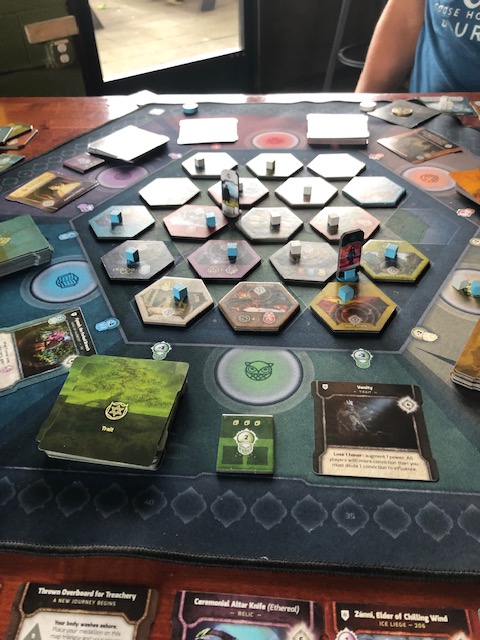 I lost the first game by seven points. That was anyone’s game. In the second game, Evan had terrible lock slaying monsters and lost his only companion twice. I have had this happen to me too. Evan lost by much more. The game end condition was hit early, too, meaning Evan had no time to recoup the losses.