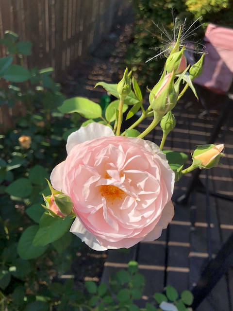 One last item, one of my roses has rebloomed. This rose has my favorite round structure for an English Rose.