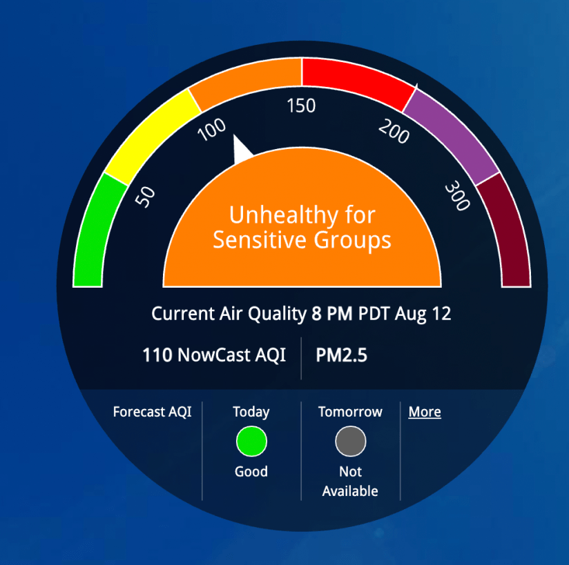 The day started with starting at 6:30ish and me doing the normal stuff of getting up, catching up on work and my home email, and then reading the status and other information at work in various slack channels. The morning was dullish, with the smoke already making everything yellowish.
