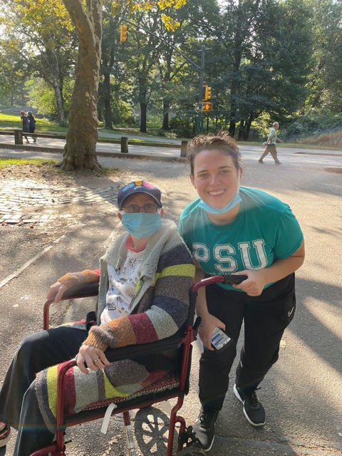 We walked 3.2 miles according to various sources to the Met-Art in Central Park. It was about a 75-minute walk with Mariah pushed Susie’s wheelchair. I lifted the wheelchair over high curbs. It was good that we belted Susie into the chair!