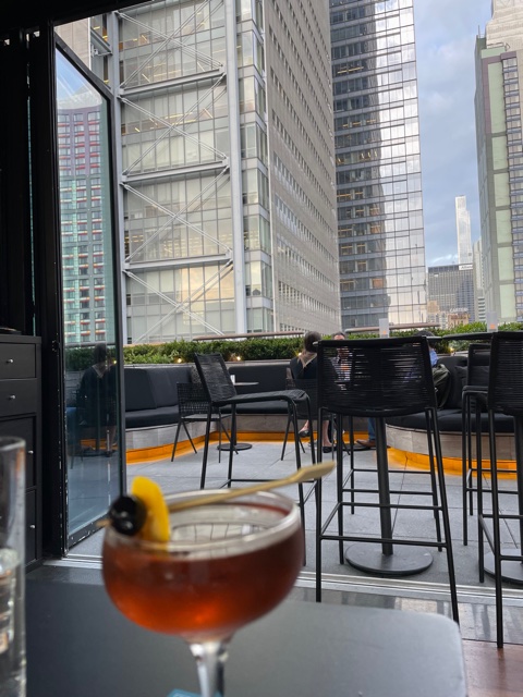 Mariah headed out again after cleaning up a bit. Susie took a nap, and I fell asleep. I awoke and called Mariah. She was in a roof bar, the AC roof bar on the 21st floor, and I joined her there and had a Gotham Manhattan. The view was stunning.