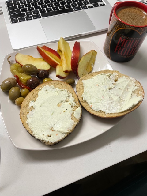 I managed to get started again, make dinner, and watch an old Doctor Who on HBO MAX online. I learned how to make the oven work and got a bagel toasted in the oven.