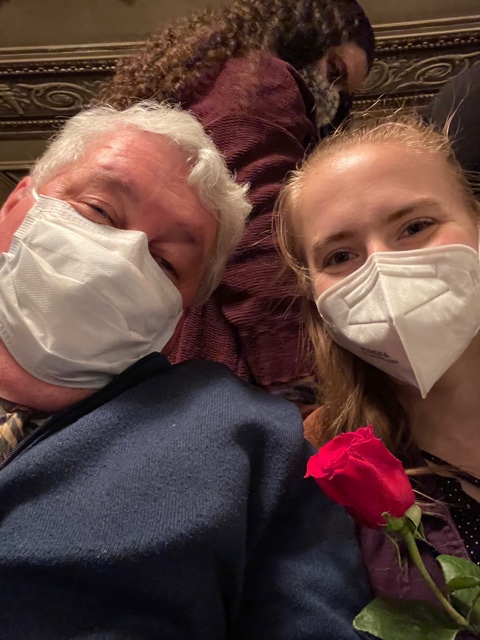As it was reopening, I was not surprised that Andrew Lloyd Webber introduced the show to a standing ovation when it was announced that the Majestic Theater was reopened. The seats had swag for everyone, including a rose and a mask, and a special Phantom mask. They took a pic of the audience wearing the masks to celebrate the restart.