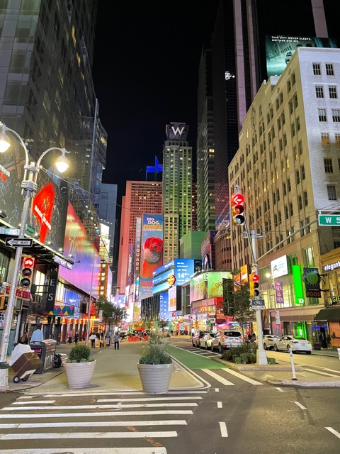 Working backward, I was back at the apartment this morning at 1:30ish. I had taken the 50th Street 1 train back. I had to walk to Times Square, not a place to be in the 1980s so late but seemed OK today, to reach the subway. Kat and I parted at 50th street as she headed home after dinner.