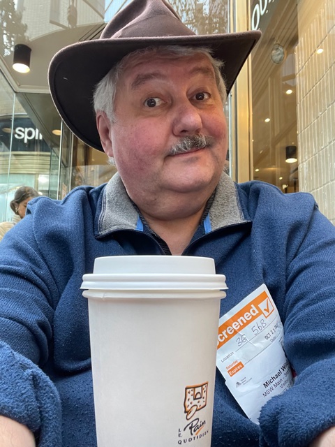 The morning was a struggle as I was up late coming back from a Broadway Show last Friday night. I managed to do the needed things and use the last of the instant coffee, Maxwell House. I headed to the Saturday version of 1 train, and folks are less masked on the weekend. But, I still felt safe, so I managed to be 30 minutes late, but there was no wait at the hospital security. They put my image on the sticker, and the sticker states which floor(s) I am allowed; there is a place for a round sticker saying that my vax state is good. Surprisingly, they were out of stickers. Nobody noticed as I have a separate sticker for vax status. Again, security knew me and asked me how Susie was.
