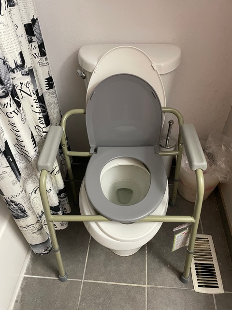 Not just a Happy Meal, but a commode was brought. I stopped by Beaverton Pharmacy, a local non-chain pharmacy, and they had what we needed. Susie checked it after I installed it. I made it lower, and it worked.