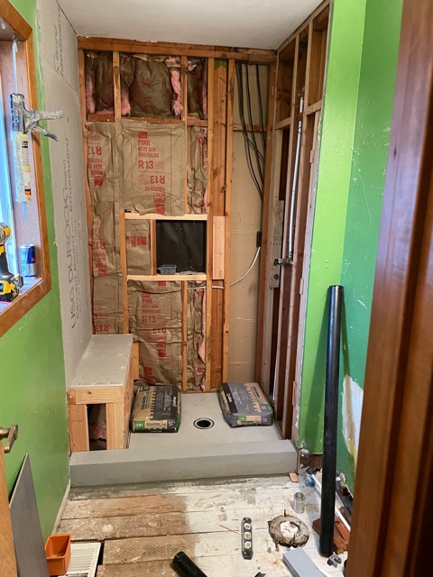 Jeff, who was surprised to have me home today, made a lot of progress on remodeling the bathroom today. We also agreed to put in a power plug outside. The wall outside is behind the shower, so it can be done now. So finally, I will have a plug for Christmas lights!