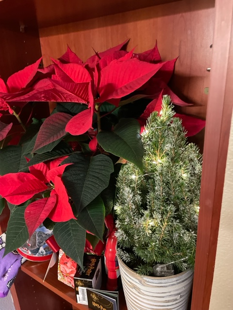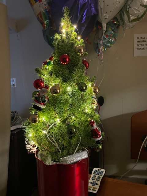I left Susie about 3:15 as I had to go shopping to get items for my purification rites (bowel prep) for my surgery on Tuesday. Susie was resting then and enjoying all the Christmas trees, one from the Smiths (plus Jason) and one from Leta and me. I left the lights on for her (running the batteries out soon).