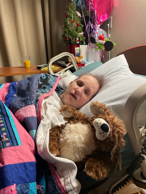 I travel to Forest Grove a few minutes late, 10:20ish, and have no surprises traveling in Air Volvo. After being admitted, I found the door closed to Susie’s room, 44A. Susie was profoundly sleeping, and they had closed the door for her. I woke her with effort. She just wanted to sleep in.