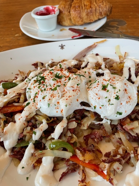 I managed to get calm on the ride back. I drove to La Provence for lunch-dinner-breakfast. There I had their french take on corned beef hash with poached eggs plus their excellent croissant. Food is my answer to most emotional items. How do you get through all of this, you ask, about 20 more pounds? But, due to my unique colon cancer experience, I am losing weight instead. Yes, a strange positive, but one I will take.