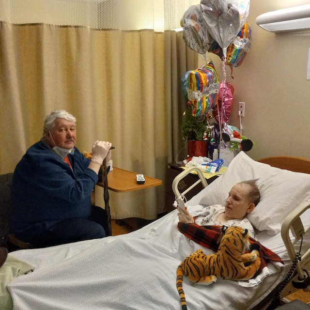 Corwin comes for the trip, which is good as there is someone else to chat with. I focus primarily on health and care issues. I then switch into a cruise director moment with “YMCA” videos and other things to get Susie moving a bit. Corwin shared some Viking-style playlist with Susie (!) that she seemed to like. I am using the cane now, and it is hard going for me to drive, take on all the care again, and then drive home. A short visit.