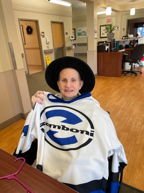 I managed to remember the hockey wear for Susie’s favorite Olympic team, Team Zamboni. I found this item in a catalog years ago and got it for her. A must-have.