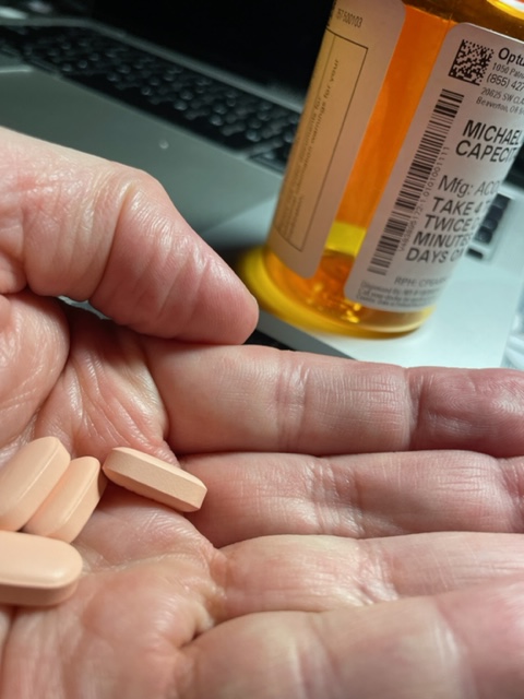 I head home, and soon the clock is at 10PM, and I end Cycle 1 with one more dose. I am up and down until about 2:20AM and finally sleep. I awake at 5 and 6 as something strange is happening outside. I feel like a vampire exposed to the sun; Oregon somehow is not gray and clouded-over today, and the morning is bright. Again, my response is more covers and simulated vampire burning.