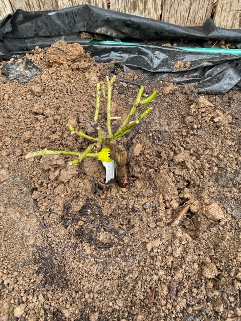 Corwin installed two holes, followed directions from David Austin folks’ pamphlet, and planted two climbers near the fence in the backyard. I had supplied special infected soil additives and rose food to mix in the earth. I was resting while Corwin quickly and efficiently planted the roses. Corwin loves the roses we have grown over the years. It has been quite a few years since we added to all our roses. This is also the first time I have ordered bare roots, so it will be interesting how it goes.