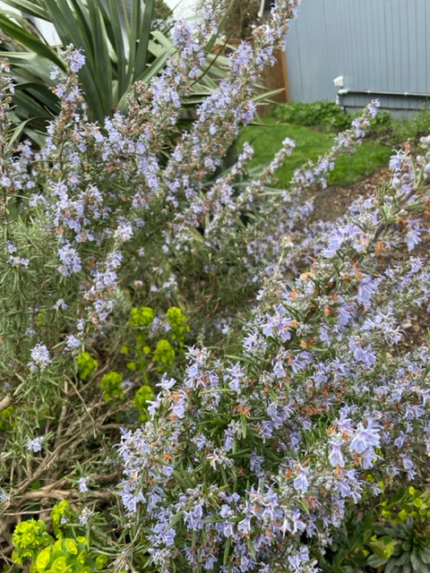 The rosemary outside, the remains of my herb garden of twenty years ago, is blooming and fantastic. It is one of my favorite plants, and I recommend new homeowners plant it as it needs no care in the Pacific Northwest. Also, you can impress your friends by asking them to cut some fresh rosemary when you are making dinner. So foodie!