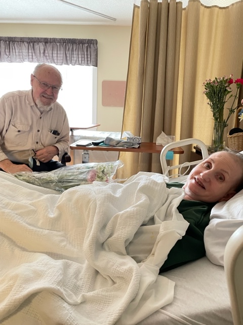 Susie is in bed, looks comfortable, and is happy to see us. We chat for a bit, and we manage a FaceTime call to Leta, Susie’s mother. I changed the flowers. I also checked with the nurse, Sarah, and there are no issues with Susie.