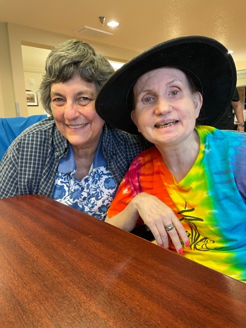 Susie was in her Wheelchair when we got there and was just finished lunch at the tables near the nursing station. One of the other residents is taking all the nurse aid’s time as the resident tries to wander but will fall–they have to have someone with her all day.