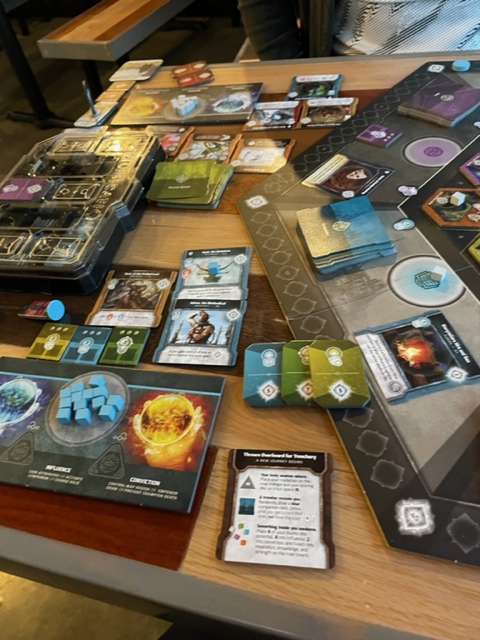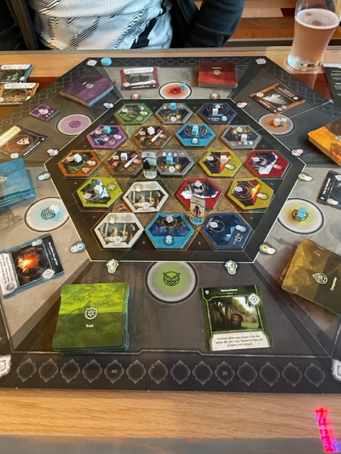 We then found a new tap house in the new Beaverton commerce center to play board games, Central Station Taps. I had a beer, and so did Evan. We played the board game Vindication, an old fav that I helped design years ago and made here in the Greater Portland Area. Evan smoked me with more than a twenty-point lead at the end! He managed to suddenly get three trips to the monsters, losing two companions, but still getting monsters that gave him a pile of end-of-game points.