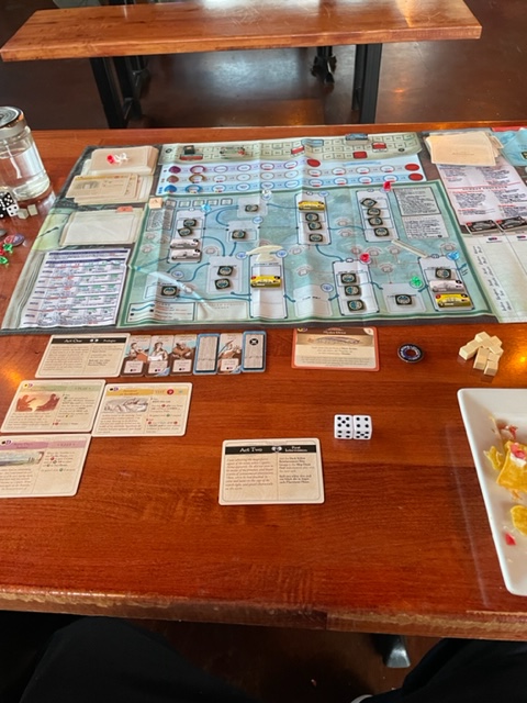I stopped as the game hit Act 2. It was getting late, I was tired, and I had to lookup more rules to play Act 2. Time to stop. I did order some nachos before that. They were great!