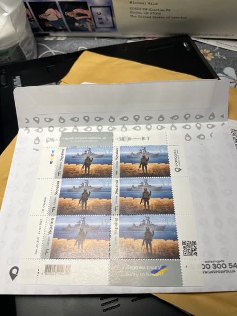 The mail included a new item for my stamp collection, the famous F**k Off stamp from Ukraine. Why yes, there is a Ukrainian stamp set with a guy flipping off the famous Russian cruiser that is now sunk in the Black Sea. The set comes with a digital version of “F**K Off,” you can play, and other unusual additions.