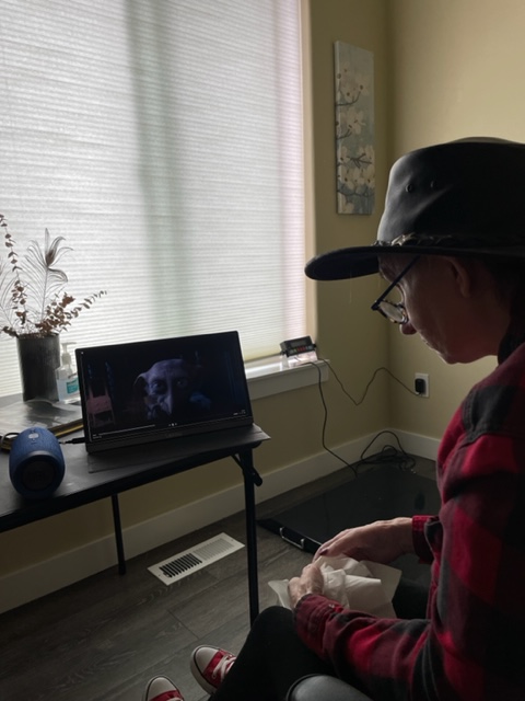 Susie was finished with breakfast; I had my repast before heading over. We headed to the more private activity room, and I set up the screen and watched the second Harry Potter film: Harry Potter and the Chamber of Secrets. This movie had the same director, and you can see the connection to the previous film (which we watched on Friday), but the lighting was better, and the kid actors were much better and, well, just barely kids. Overall, it is a better movie, and I have seen it many more times than the first.