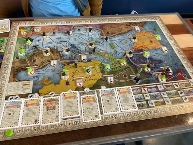 In many really simple turn but challenging strategy games, you need to focus on what you have purchased and make it work instead of trying to do everything. This is the secret to Concordia and other board games–may be the secret to life. Also, there are always those end-of-game conditions, and having all your colonists on the board is worth many points at the finish and gives you more options until the game ends. To win, you need to keep working towards the final goals balancing that with your short-term goals–also a secret to life.