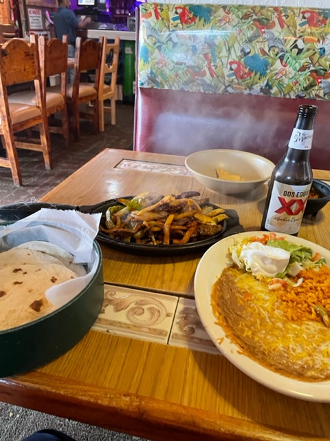 I headed out and stopped at Pepitas for lunch in Beaverton. The place was packed, and there was precisely one waiter, manager, and host, all the same guy. I waited twenty minutes for a table, and service was slow at first. I ordered a beer in a bottle to make it easier on them and steak fajitas to make the check higher than usual–they were being crushed. My dinner-lunch game out without issue and was quick. The bartender was helping. He cleared my table and took my payment to release some pressure on the manager. Lunch/dinner was excellent.