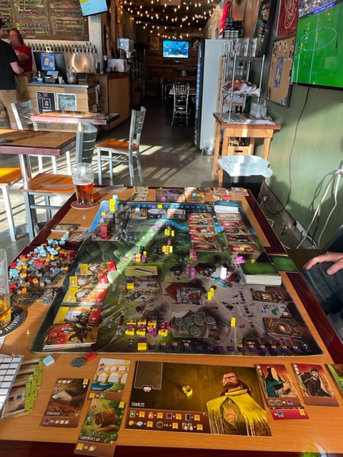 Next, with no work items for me from the calls and watching the Slack channels and email, we go with the board game Architects of the West Kingdom on a corner table with just enough light. I managed to drop the game on the floor while setting up and made a mess. We played a fast game with it ending with Evan missing the win by five points. A very close match.