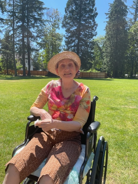 I was late to see Susie, so I called ahead, and Jennifer, the nurse for today, agreed that she would have Susie ready in a wheelchair when I got there if Susie wanted a spin outside. So Susie was waiting by the door in her wheelchair when I arrived.