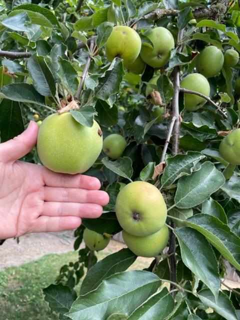 And a pioneer apple tree from the original farm is happy even after falling and being cut back. These are cider apples from the old days.