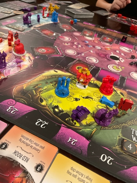 Aside: I have described Vindication often in the blog. You can find more information here: Vindication. It was made here in the Pacific Northwest, and I know the game designer and had some input into the final game. As a Kickstarter game, its buy-in price has ballooned (all of the cool add-ons that attract folks to Kickstarter increase the price) to $349 (you can still get it from Game Steward). I have bought my copy piece by piece over the years, one Kickstarter at a time, and so have not noticed the high price. The next game I played at Richard’s is the same story: Wonderland Wars. The Kickstarter version retails at over $300 if you can find it on eBay or other secondary markets (Game Steward is out of stock).