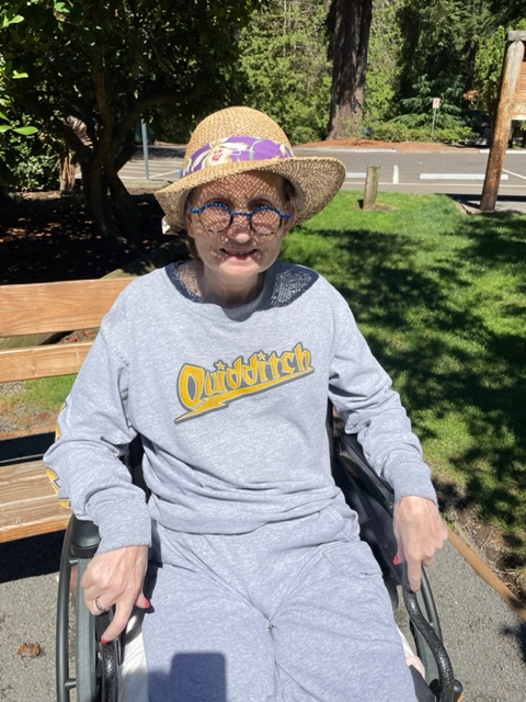 After completing the call, Jennifer moved Susie into her wheelchair, and we traveled to Metzger Park next door. It was busy today as school was starting soon–or had begun, and the kids and adults seemed to want one last time in the park. We saw one high school-aged gal with her younger brother, whom I recognized. She was again in the park practicing her dance routines with a hula hoop while her brother ran around the park, and her little dog enjoyed the grass.