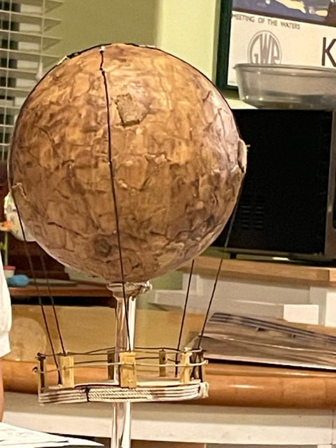 We got out the balloon model I made for this adventure. My character got to do a Mary Poppins, jump off a building with a magical parasol, and float down to the ground, taking minimal damage. Never done that before in D&D!