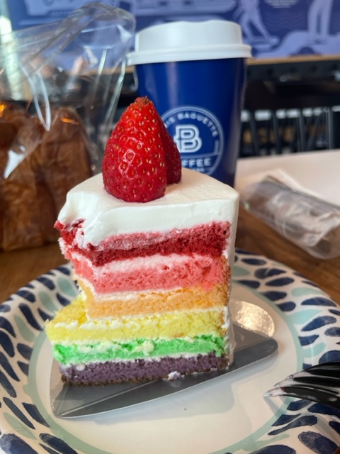 I then went to the bakery nearby, Paris Baguette (PB), a chain I used in New York City. I got croissants and something called croissant loaf. Next, I got dessert (another one) there and coffee. I spent hours writing part of a Dungeons and Dragons adventure I plan to play in late October. I texted Cat in NYC–thinking of her at PB–and we then texted about the story and came up with some ideas. I made progress today on the story.