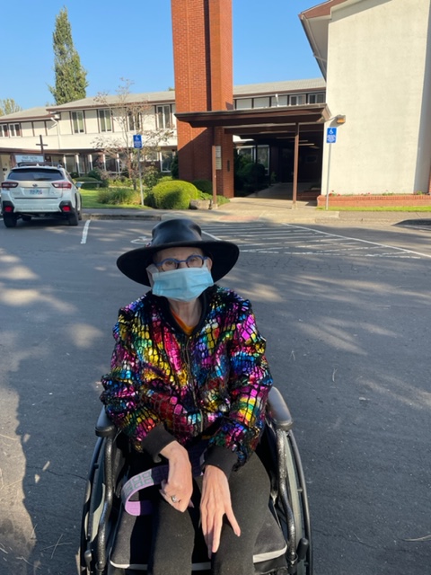We made it to the church, a short drive without any adventures with Beaverton’s Finest or warm yellow lights. I loaded Susie from Air Volvo to her wheelchair, and Susie was welcomed back to First United Methodist Church. Pastor Ken, who Susie had not met, was happy to meet Susie.