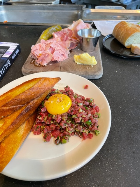Next lunch/dinner. While expensive, my food and gin and tonic at Olympic Provisions were some of the best food (all meat) I have had in a long time. I was last there with Susie in the pandemic, with the Proud Boys rioting in their trucks all over Portland. I had the ham board (they make great ham) with steak tartar. It is a beautiful product.
