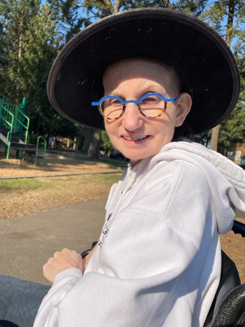 I reached Susie in record time, as 217 (usually a mess) was running well. Susie was feeling better and was even a bit talkative. I always struggle to understand her, but today I got the general sense of what she was saying–a hopeful sign. I pushed Susie to the nearby bench in the park–there was sun and no wind, thus warm. Susie was already commenting on it being cold, but the sun worked.